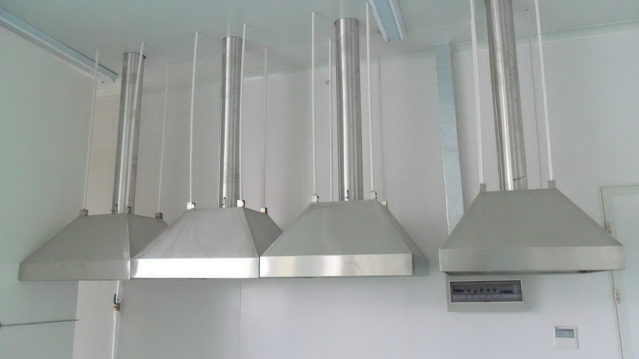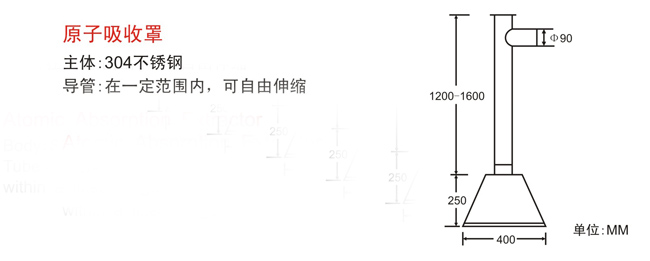 原子集氣罩:采用1.0MM厚不銹鋼板折彎、沖壓而成,安裝用支架固定于屋頂天花上,并和PVC排氣管連接;